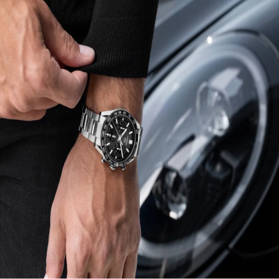 Полированный/сатинированный корпус из нержавеющей стали. Черный фиксированный керамический безель с тахиметрической шкалой. Выпуклое и скошенное сапфировое стекло с двойным антибликовым покрытием.  Сапфировая задняя крышка из нержавеющей стали с винтовым креплением.